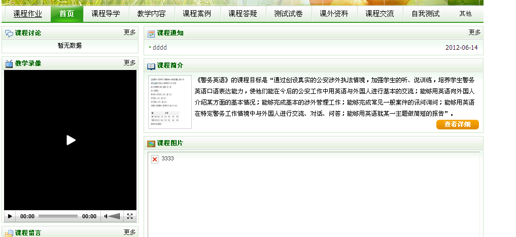 这里可以设置课程网站显示的栏目,首页显示效果。