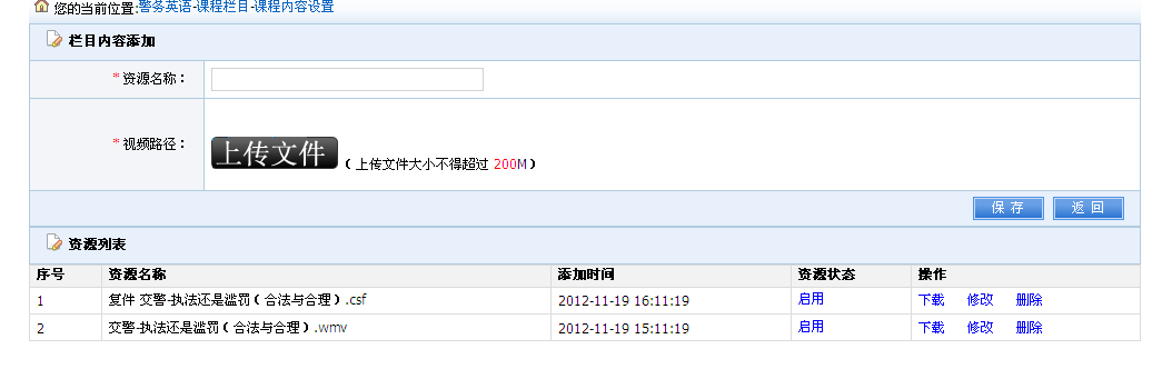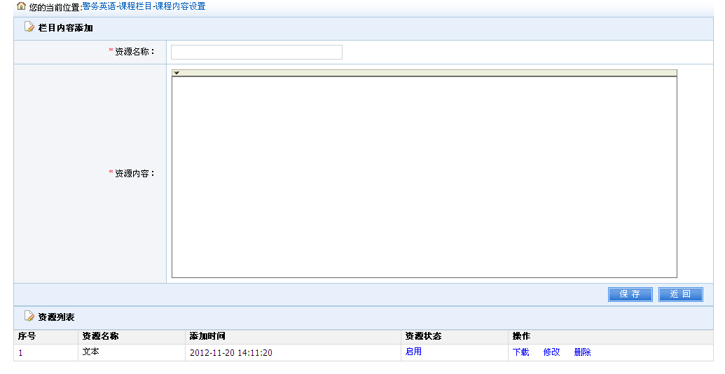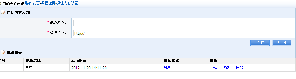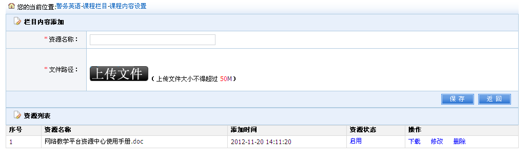 描述:网络教学预制13个基础栏目,但是为了,满足课程网站的个性化需要,这里可以新增栏目,进入课程管理--->课程网站管理--->栏目管理