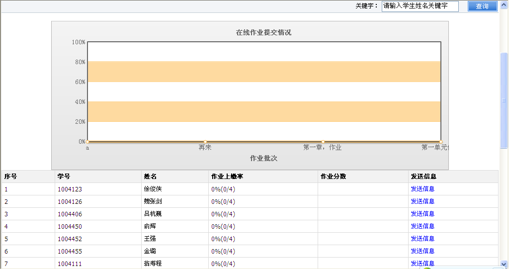 第三步:点击作业情况统计,查看学生作业的完成情况:
