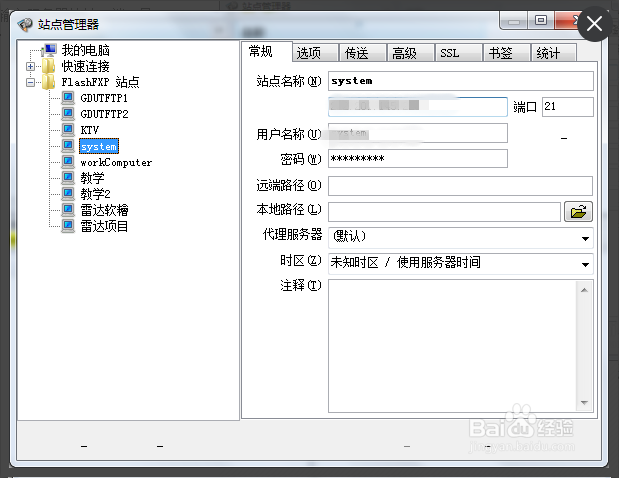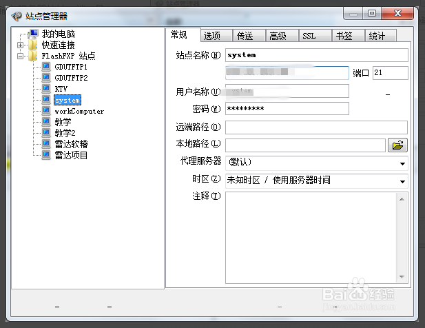 6.新建一个站点,输入服务器地址,端口号,账号密码等