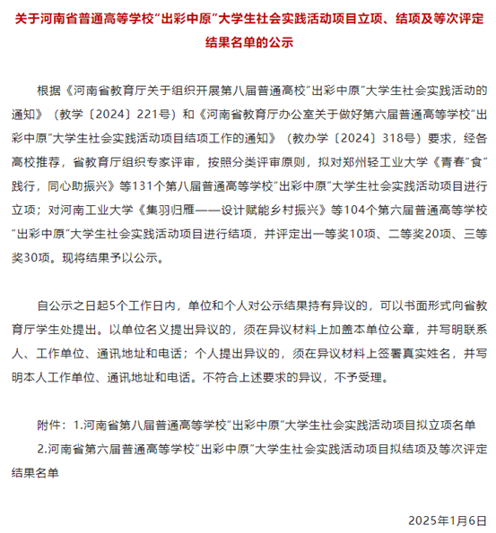 此次获得河南省第七届普通高等学校“出彩中原”大学生社会实践活动立项,是对管理学院过往实践教育成果的高度认可,具有非凡的意义。这一立项不仅为学生搭建了更为广阔的实践平台,使其能够深入社会基层,了解民生百态,增强社会责任感;还将进一步提升学院的社会影响力与美誉度,吸引更多社会资源助力实践育人工作的持续发展,为学院的人才培养体系注入新的活力,促进教育教学质量迈向新的台阶,助力培养出更多适应时代需求、具有家国情怀和实践能力的优秀人才。