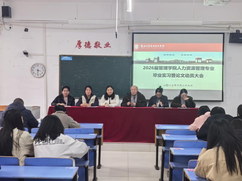 会议伊始教研室负责老师向学生说明本次会议的目的及相关议程。会上宣读了2026届人力资源管理专业毕业生论文工作方案,强调了今年毕业论文的新要求,重点解读了毕业论文撰写要求和重点注意事项。针对本科毕业生实习工作,向同学们公布了实习计划,并向大家强调了遴选实习单位的条件及学生实习期间安全等事宜。