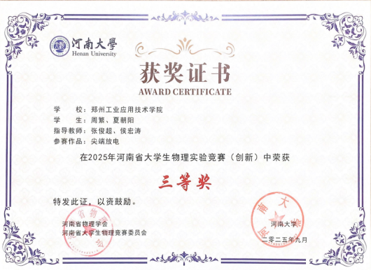 2025年河南省大学生物理实验竞赛(创新)决赛于8月21日—22日在河南大学举办。在比赛中,我校参赛队员沉着应战、配合默契,从实验方案的设计论证到仪器设备的操作调试,从数据的采集处理到结论的分析提炼,每一个环节都展示了我校学子扎实的专业基础、良好的科学素养和卓越的团队协作精神。