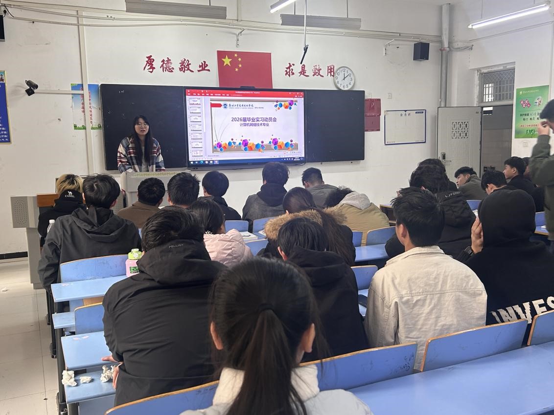 (文图/余姝欣)2025年10月29日中午,为帮助2023级计算机网络技术专业学生明确实习要求,把握实习方案,确保2025届毕业实习工作的顺利开展,全体毕业实习指导老师、教研室主任阮家帅、辅导员井颖双以及2023级计算机网络技术专业全体学生,参加了由信息工程学院物联网工程教研室在信科楼3-303教室召开的2023级计算机网络技术专业学生的毕业实习动员会。