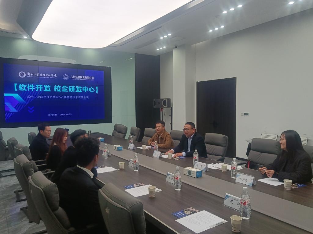 郑州八角信息技术有限公司对孙滨副院长一行来访表示热烈欢迎,之后详细介绍了公司的发展历史、产品概况、人才需求等情况,他表示,希望今后加强与高校尤其是郑州工业应用技术学院信息工程学院的联系与合作,随着公司业务的快速发展,期待今后能有更多年轻人的加入共同发展。