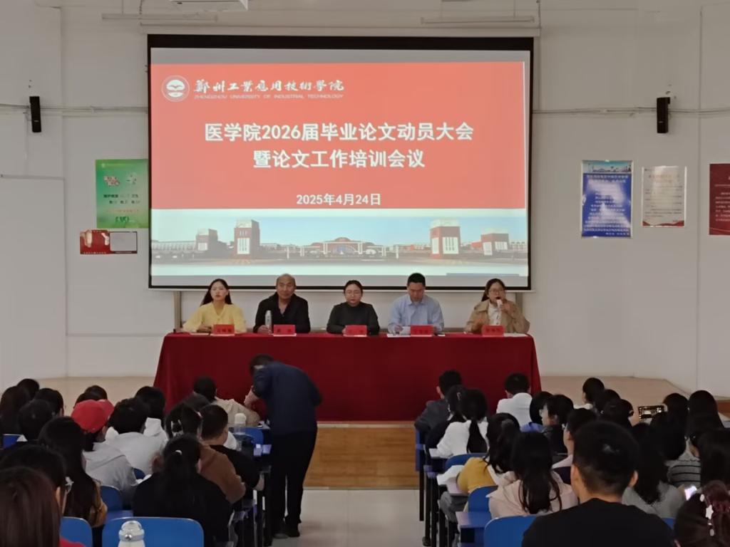 为扎实推进2026届本科生毕业论文工作,提升毕业论文质量,2025年4月24日上午,医学院在学术报告厅2召开2026届毕业论文动员大会暨论文工作培训会议。会议由医学院学术委员会秘书张伟利主持,医学院院长王琰、教学科研副院长丁书明、学术委员会主任娄庆、教学科研秘书马琳琳以及学院部分师生代表出席了本次会议。