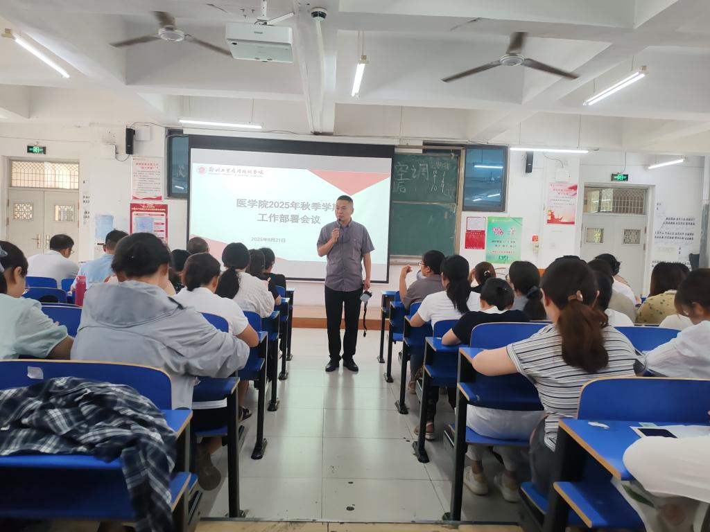 2025年8月21日下午,我院在医学楼北3教室召开2025年秋季学期工作部署会议。学院领导班子与全体教师共同参会,深入研讨秋季学期和迎接审核评估的各项准备工作。