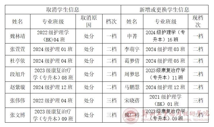 根据《关于做好2024年国家奖助学金评审发放工作的通知》(郑工政〔2024〕176号)、《星空游戏苹果的家庭经济困难学生评议认定工作实施细则》的文件精神及相关规定,结合我院2025年春季助学金全面排查情况和学院资助领导小组意见,我院拟定更换2025年春季国家助学金受助学生名单,现将受助学生名单更换如下: