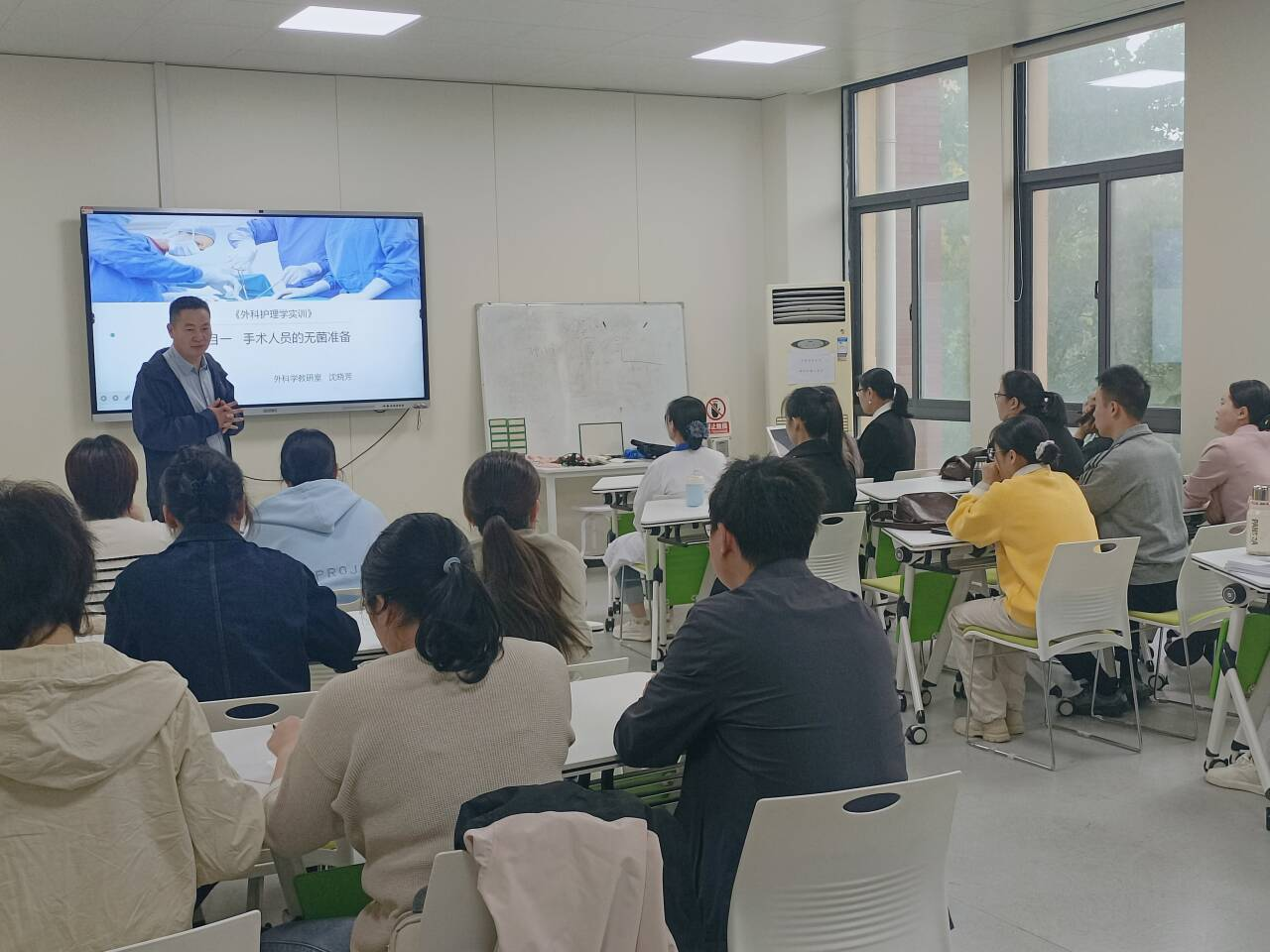 培训由多位优秀教师现场示范授课,内容实用、指导性强。首先,沈晓芳老师带来“课程思政示范课”,通过生动的教学案例,详细讲解如何将思政元素有机融入《外科护理学实训》课程的教学环节,为新教师提供了课程思政建设的具体路径与实践思路。