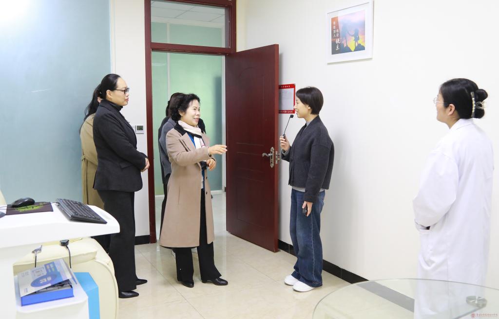 孙爱芳详细了解中心建设、工作运行机制、学生心理咨询、心理危机干预、心理普及活动等工作情况,并与专职教师就相关问题亲切交流。
