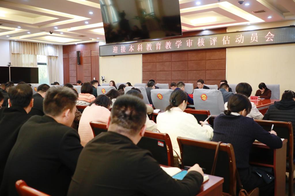(文/白彩香 图/刘婷)11月14日,我校在行政管理中心二楼会议室召开迎接本科教育教学审核评估动员会。全体在校校领导出席,全体中层干部、各专项工作组成员参加。会议由副校长贾圣强主持。