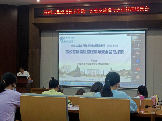 2022年6月21日,药学与化学工程学院全体实验室工作人员在建工楼天健厅参加了由河南师范大学实验室与设备管理中心郭玉明主任的关于高校基础实验室建设与安全管理探索的培训。