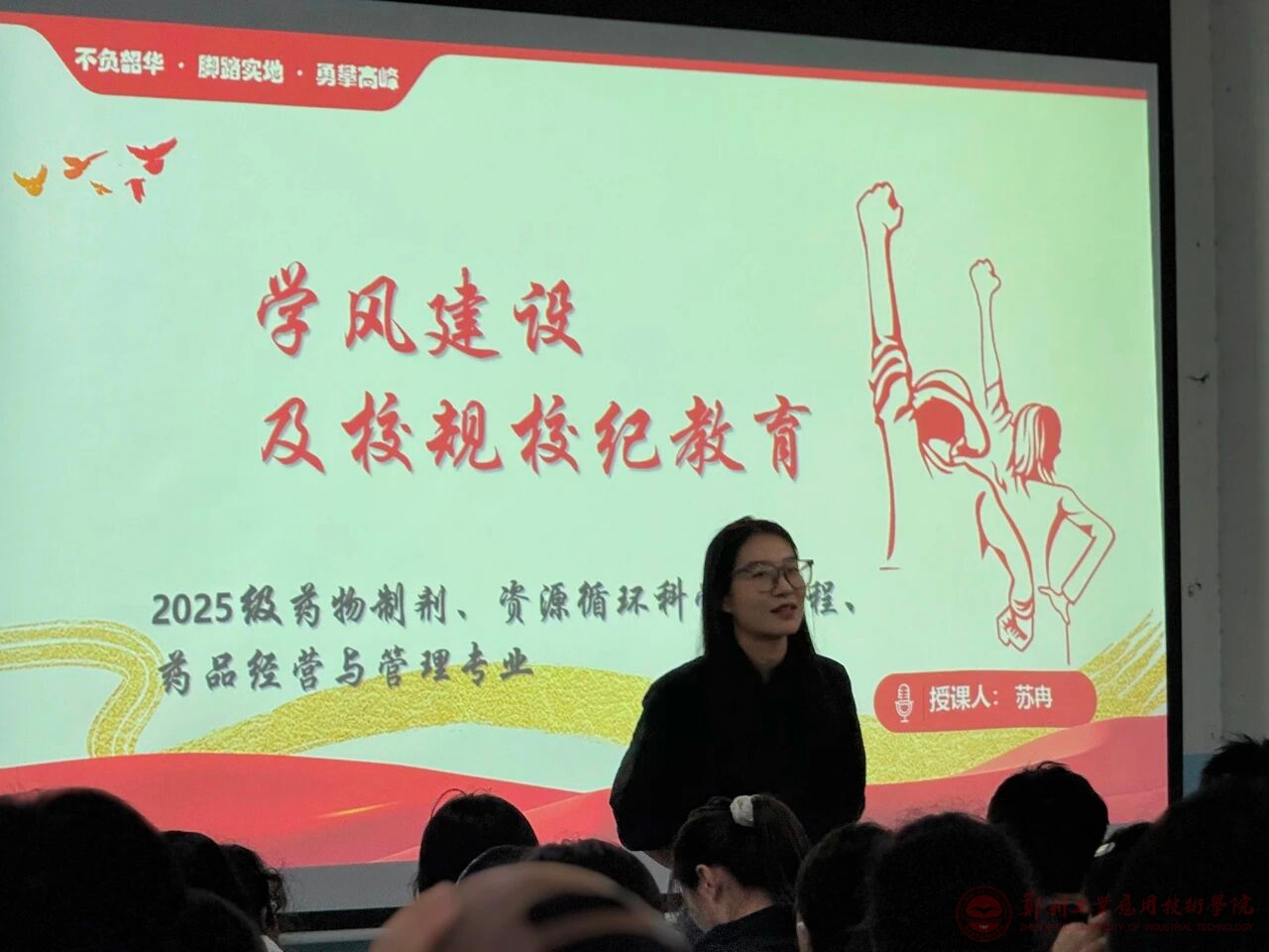 为深入贯彻落实立德树人根本任务,帮助2025级新生完成角色转变与认知过渡,引导新生树立正确的价值观,明确大学阶段的学习目标与行为准则。2025年9月11日,药学与化学工程学院在明德楼N1组织开展“学风建设及校规校纪教育”主题入学教育活动。本次活动分别由新生辅导员张景瑞老师与苏冉老师主讲,我院2025级全体新生参与。