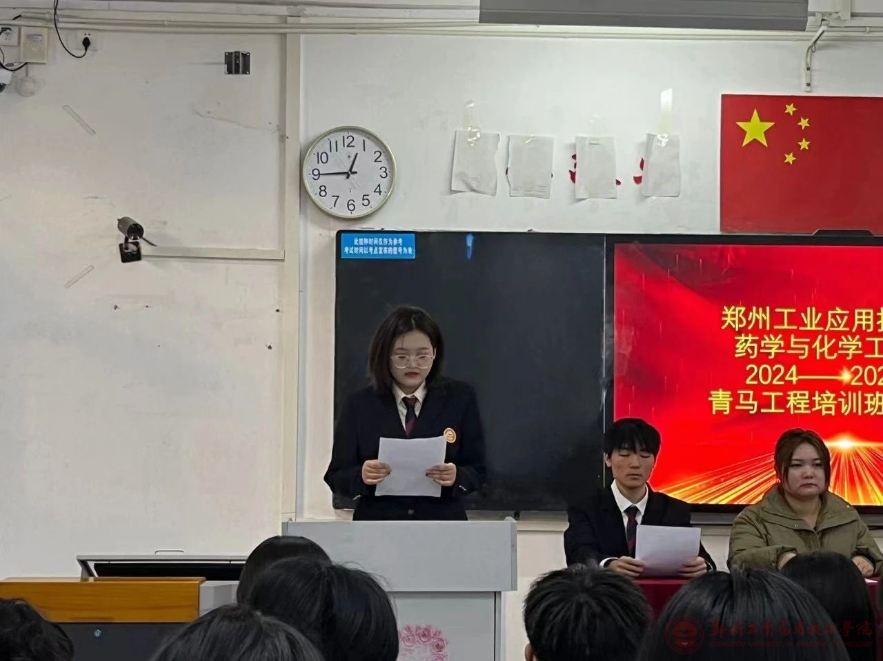 2024年11月28日,药学与化学工程学院在文华1-110举行“青马工程”培训班开班仪式,参加会议的有药学与化学工程学院分团委书记倪言言老师、药学与化学工程学院分团委副书记马旭老师、药学与化学工程学院辅导员郭娆老师以及“青马工程”培训班全体学员,本次会议由学生团委副书记赵韩同学主持。