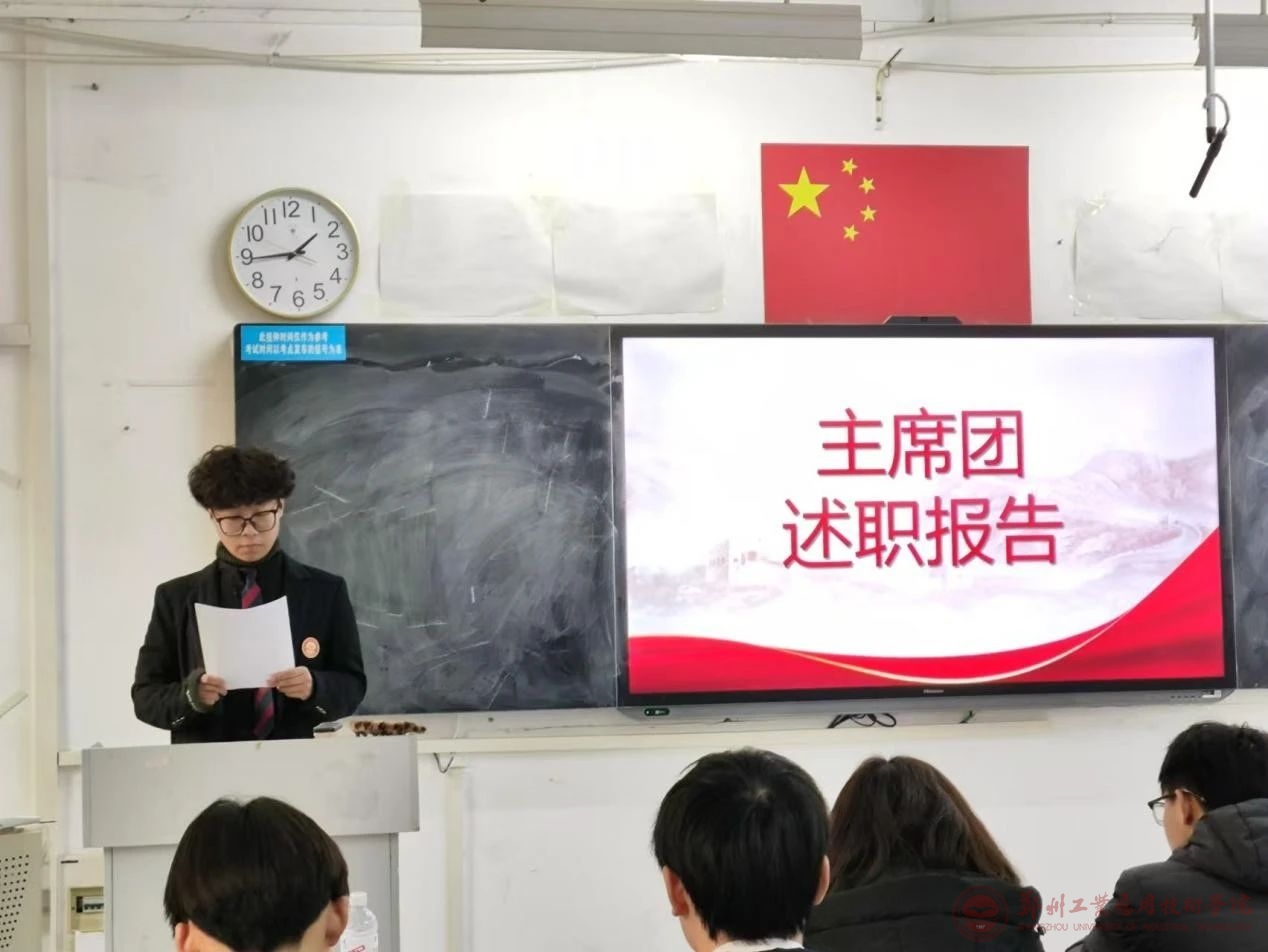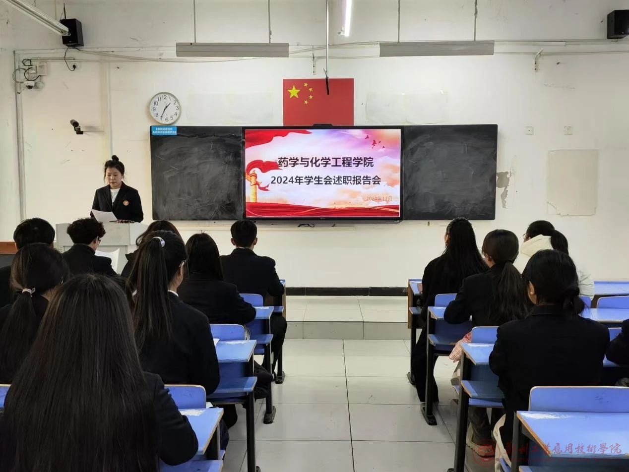 为全面总结2024年学生会各部门工作情况,进一步提升学生组织的工作能力与综合工作素养,药学与化学工程学院于2024年12月30日,在文华楼1-108召开了2024年学生会述职报告会。我院分团委书记倪言言老师、分团委副书记马旭老师和学生会全体成员参与本次会议。