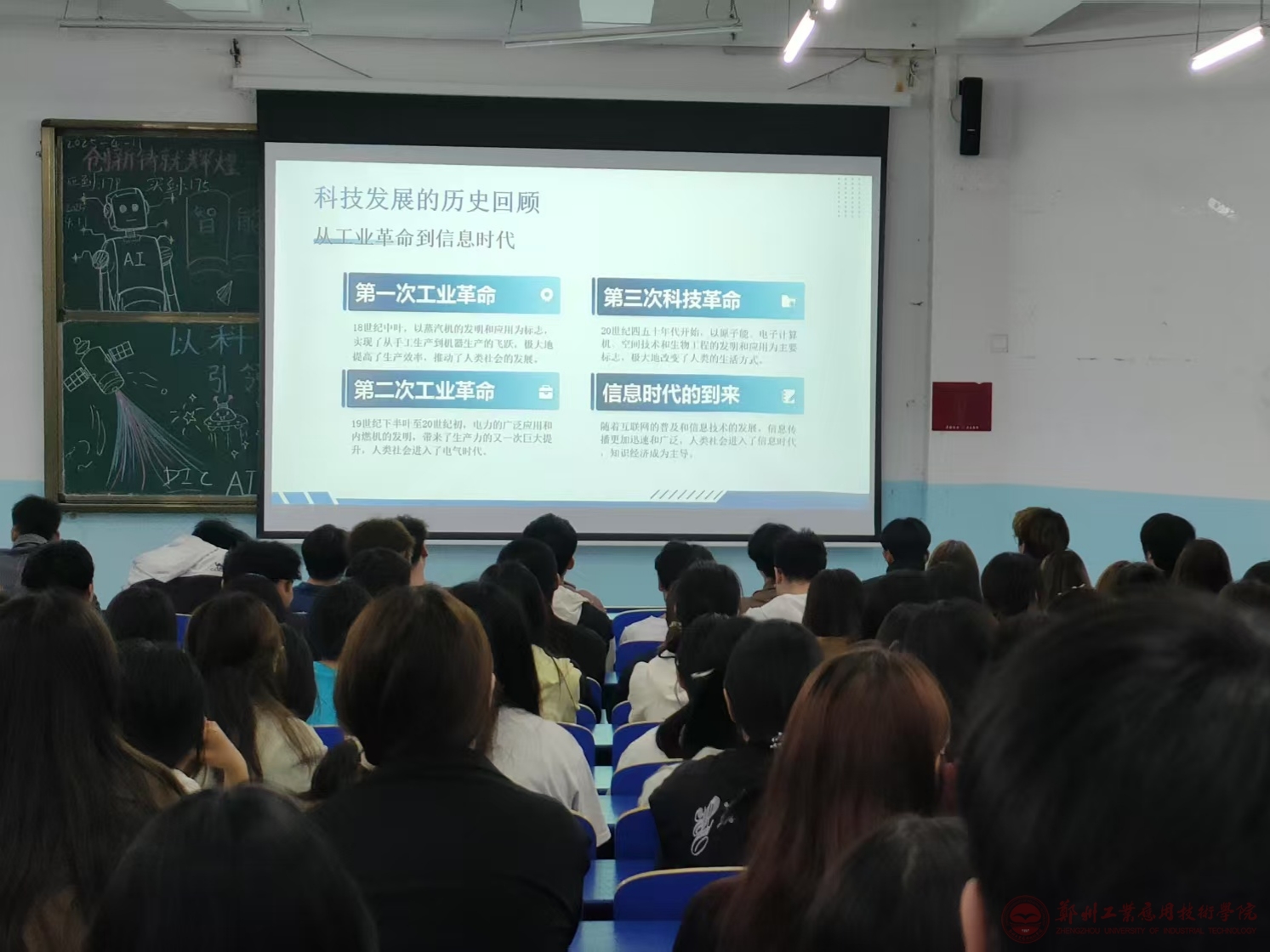 在活动中,团支书借助精心制作的PPT,从科学技术发展的过程讲起,阐述了从工业革命到信息时代的历史,让同学们认识到,青春不只是追逐潮流、享受生活的时期,更应是投身科技探索、助力技术革新的宝贵时光,科技创新不只是科研人员的专属,更是我们成长的方向。